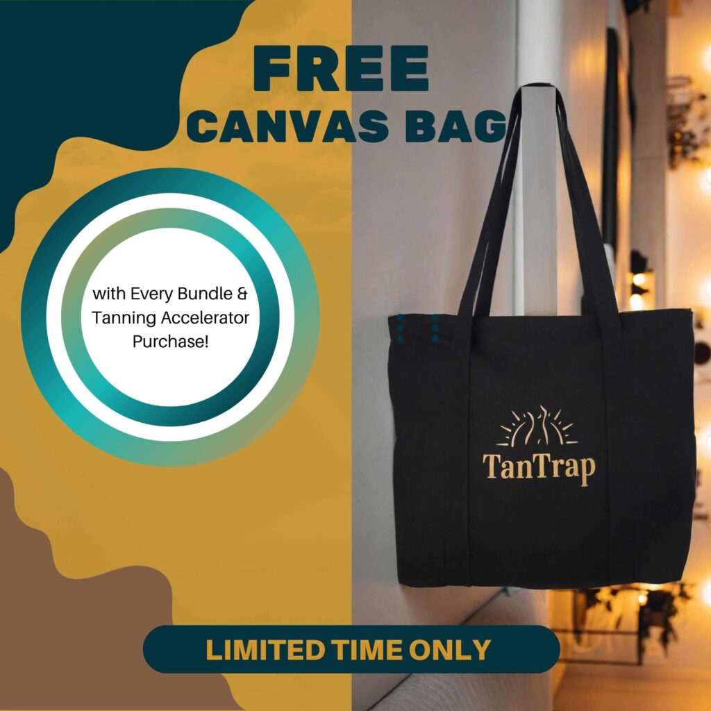 For a LIMITED TIME ONLY, we’re giving away our brand new TanTrap Canvas Shoulder Bag with every purchase of any bundle or tanning accelerator lotion. This isn’t just any bag – it’s been specially designed with you, our valued tanning enthusiasts, in mind!