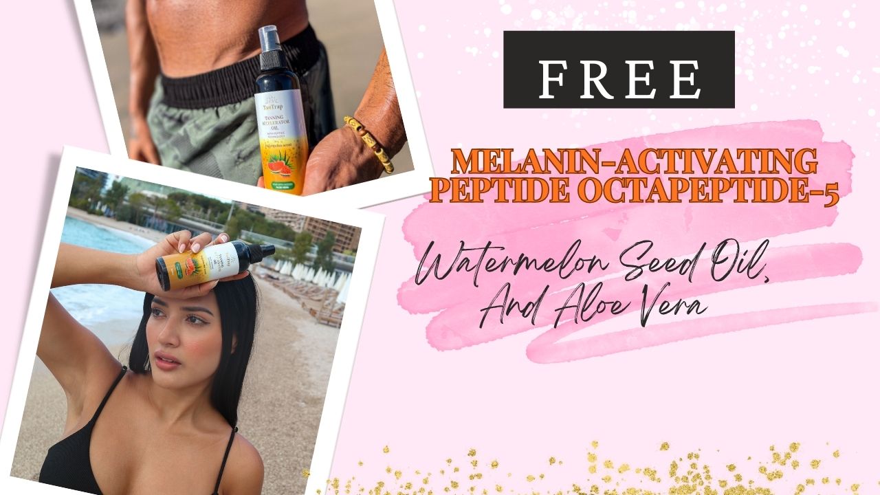 Packed with Melanin-Activating Peptide Octapeptide-5, nourishing Watermelon Seed Oil, and soothing Aloe Vera, our Peptide Tanning Accelerator Oil is designed to support a deeper, more natural-looking tan. Spend £40 or more and we’ll add a bottle to your order — completely free, automatically at checkout. A little something extra from us to you, while stocks last.