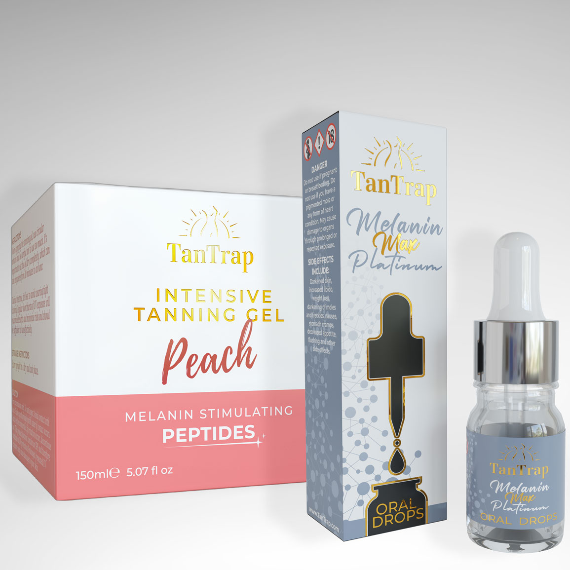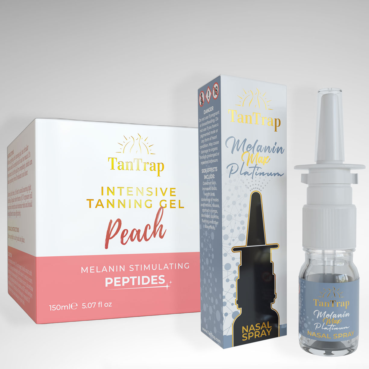 Experience the ultimate tanning package with our Intensive Tanning Gel Bundle. Indulge in a flawless sun-kissed glow with our Intensive Tanning Gel infused with a refreshing Peach scent and melanin-stimulating peptides. Â This advanced formula moisturises and nourishes your skin while providing an even, long-lasting tan. For an extra boost, choose between our Nasal Spray OR Oral Drops Tanning Accelerator range, which enhances your tan by stimulating melanin production, giving you a deeper, darker colour in less time. Say goodbye to pale winter skin and hello to a radiant summer glow with our Intensive Tanning Gel and Nasal Spray Bundle.