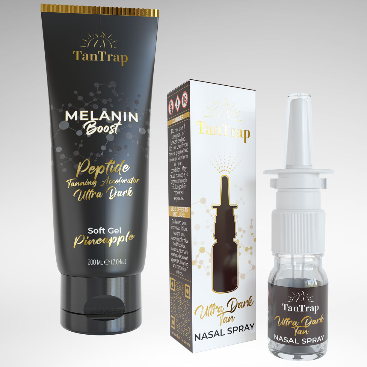 Get a deeper, darker tan with TanTrap’s Melanin Boost – Ultra Dark Peptide Tanning Accelerator Bundle.
